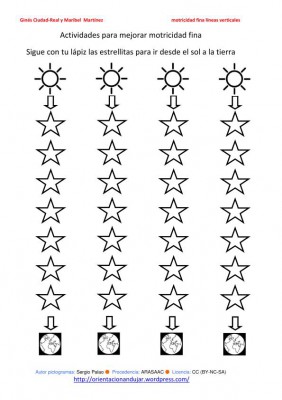 Atendiendo una sugerencia de una seguidora de OrientaciónAndújar, hemos creado unas actividades secuenciales , para trabajar la motricidad fina, a traves de la la grafomotricidad. En ellas hay que realizar un recorrido para llegar desde un objeto inicial a otro final. Nos hemos ayudado en el recorrido de formas reconocibles por el niño/a , de tal forma que sea más fácil seguir el camino.