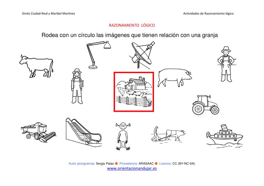 RAZONAMIENTO LÓGICO categorizar y agrupar objetos granja ByN imagen