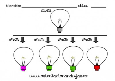 organizador grafico una causa tres efectos editable bombillas infantil y primaria