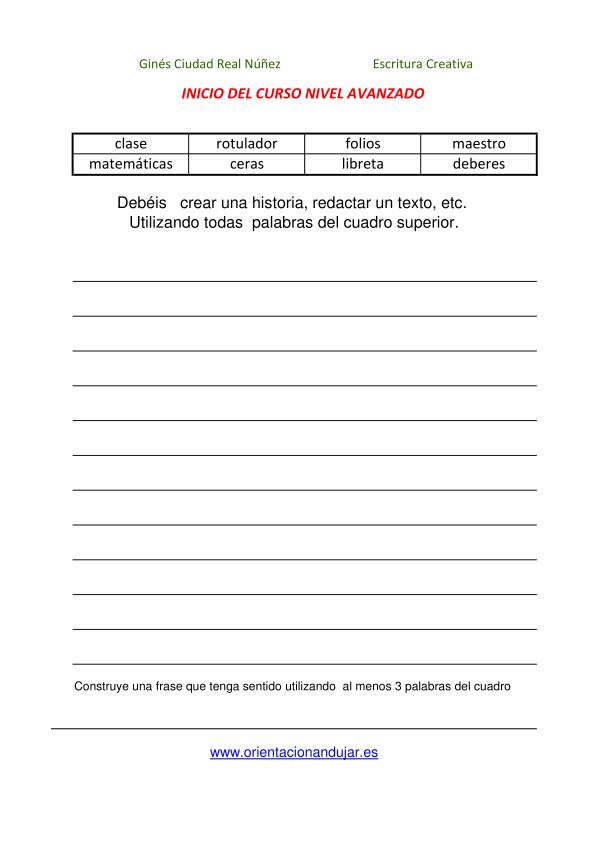colección de escritura creativa INICIO DE CURSO NIVEL AVANZADO Publicado por orientacionandujar el 26 septiembre, 2013