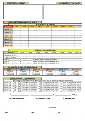 También se contemplan la incidencias producidas en el grupo, la evaluación y la decisión de continuar o no en el mismo grupo o con otro grupo con un Nivel de Competencia igual, inferior o superior.
