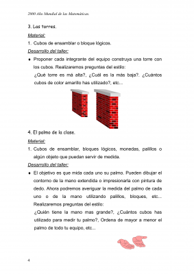 Está pensado para profesores que trabajen con niños y niñas de tres a dieciséis años. Dentro de cada actividad, se plantean los objetivos matemáticos, el material necesario (por lo general de uso común en la escuela) y cómo desarrollarla.