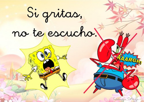 He encontrado unas normas con el personaje animado Bob Esponja como protagonista que me han parecido bastante útiles y he querido compartirlas con vosotros. La autora es Carmen Ortega .