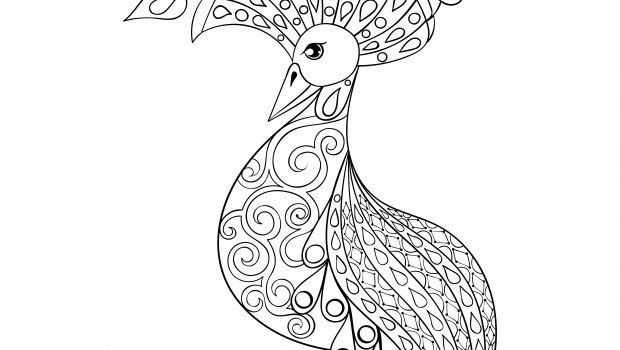 Coloring page with Bird, zentangle illustartion bird for adult Coloring books or tattoos with high details isolated on white background. Vector monochrome sketch of exotic bird.