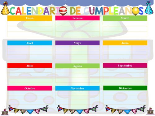 - El imprimimos el mural de cumpleaños para la clase, que se ha descargado de la web y el el que vienen una serie de espacios por cada uno de los meses del año