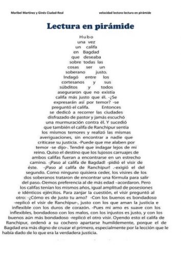Aqui os dejamos una serie de ejercicios que nos ayudaran a mejorar la velocidad lectora. Los primeros consisten en lecturas con forma triangular con la que se potencia el desarrollo de la visión periférica.