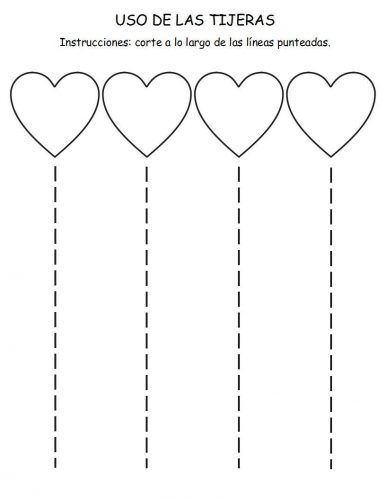Sencillas actividades para trabajar la motricidad fina mediante unas sencillas actividades de recortar, pegar y trazar con el motivo corazones.