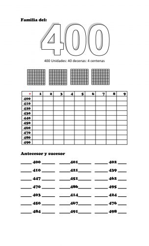 Compartimos estas fichas para trabajar la centena (Del 100 al 900) con diversas actividades de numeración, anterior posterior, situación numérica… Se trata de un conjunto de 9 fichas en formato PDF para cada una de las centenas.