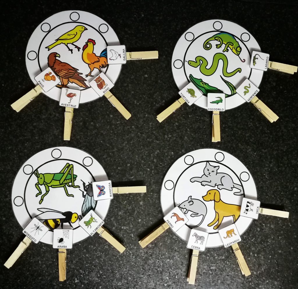 Material manipulativo tipo TEACCH para trabajar el aprendizaje de vocabulario y la semántica a través de la clasificación de los animales, atendiendo a tres criterios: