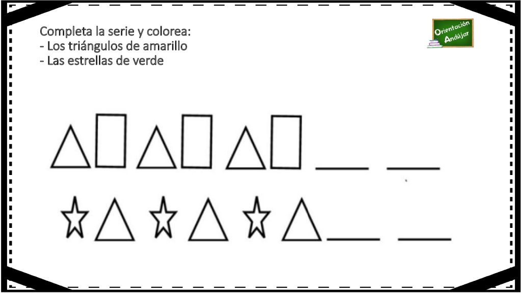 Os presentamos unas nuevas fichas de razonamiento lógico con figuras geométricas. En ellas nuestros alumnos deben de continuar la serie como en el modelo y posteriormente colorear las figuras según las instrucciones.