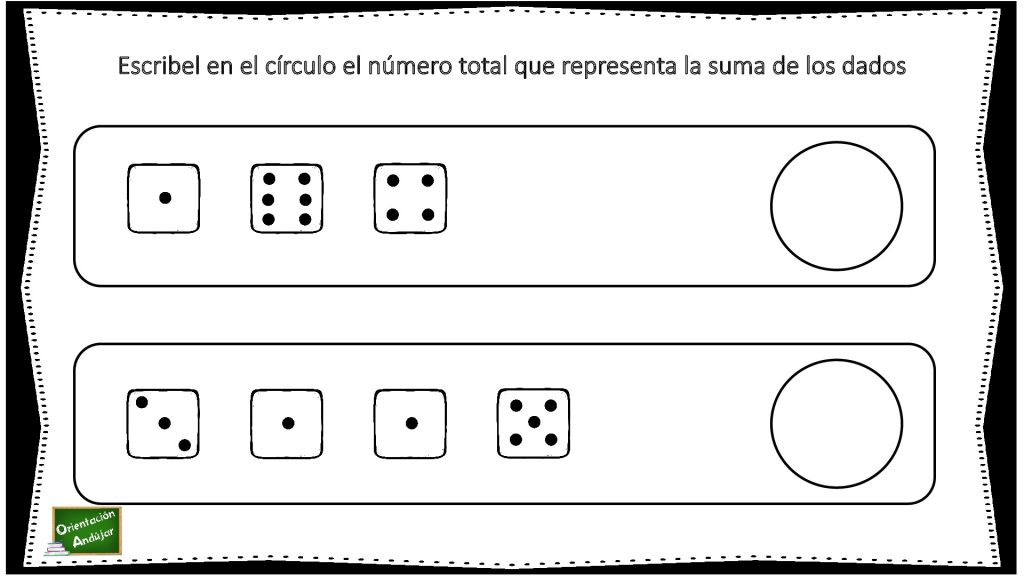 cálculo mental, Competencia Matemática, Operaciones básicas, SUMAS Sumas sencillas a través de dados. Publicado por orientacionandujar el 18 noviembre, 2018 Os hemos preparado estas actividades para trabajar las sumas apoyándonos en el empleo de dados. DESCARGAR ARCHIVO PDF dados sumas Comparte esto: Haz clic para compartir en Facebook (Se abre en una ventana nueva) Facebook Haz clic para compartir en X (Se abre en una ventana nueva) X MAS RECURSOS SOBRE ESTE TEMA
