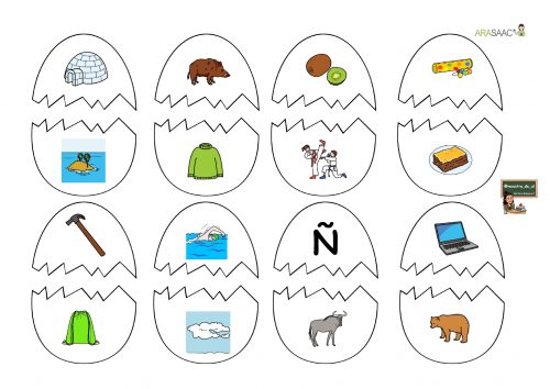 El juego consiste en unir las mitades con la imágen cuya palabra empiece por la misma letra.