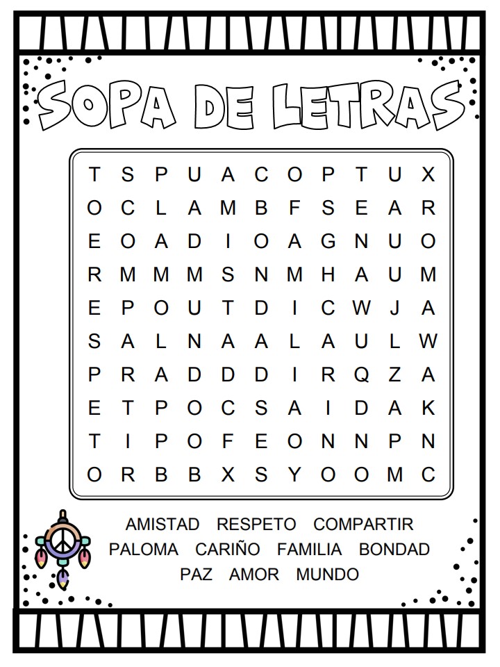 Día de la PAZ sopas de letras para trabajar en clase (5) Publicado por orientacionandujar el 17 enero, 2020