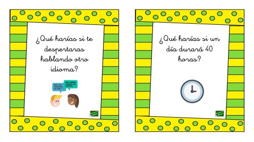 Nueva colección de tarjetas para trabajar el pensamiento creativo y la expresión oral con la divertida estrategia: «¿Qué harías si…?». Se propondrán situaciones surrealistas o disparatadas que nuestros alumnos deben resolver. Una dinámica que se puede realizar tanto en casa como en el aula.