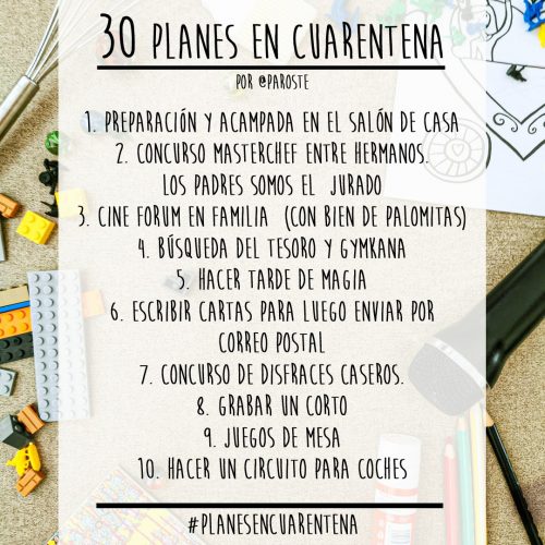 Aquí tenéis el listado con 30 planes para hacer durante este aislamiento.