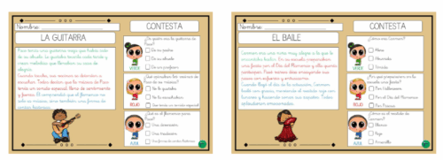 - Lecturas comprensivas con pistas de colores sobre el flamenco