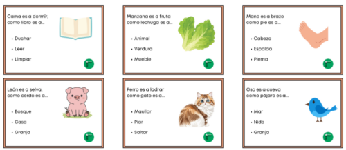 - Pack de tarjetas con analogías Trabajamos pensamiento lingüístico y lógico