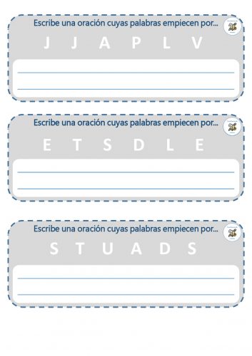 La actividad en sí es estupenda para ejercitar las habilidades cognitivas. Consiste en crear una oración cuyas palabras empiecen por cada una de esas letras.
