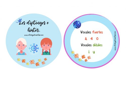 A través de ocho preciosas bolitas de nieve y una paleta de colores representativa y fiel a la temática los peques podrán estudiar los diptongos e hiatos de una manera bonita y divertida.