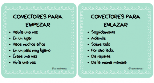 En algunos casos les daré varios ejemplos de conectores iniciales, otros para enlazar y algunos para finalizar (cómo podéis observar en las tarjetas).