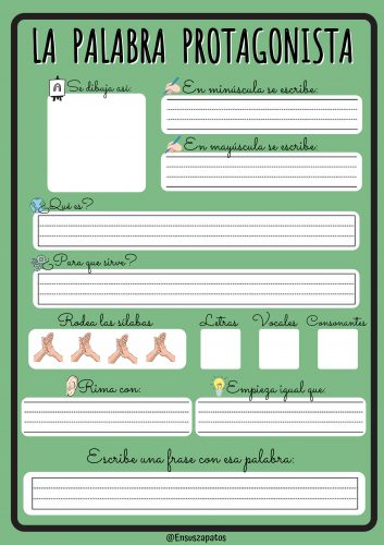 Hoy traigo un recurso para trabajar diversos aspectos relacionados con el aprendizaje de la lectoescritura a partir de una palabra: la palabra protagonista.