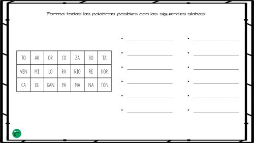 Completa actividad para trabajar tanto la lectoescritura como la conciencia silábica. La conciencia silábica se enmarca dentro de la conciencia fonológica, y hace referencia a la capacidad de comprender que el discurso hablado se divide en unas unidades sonoras más pequeñas que son las sílabas, así como la habilidad para manipularlas.
