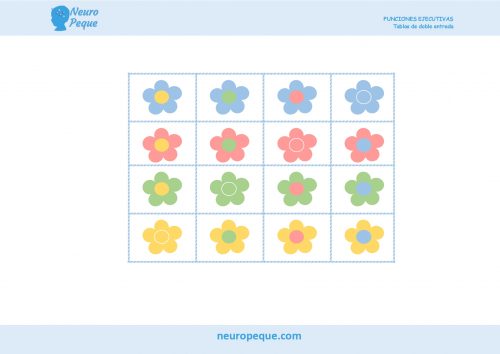 Con este material, además de trabajar las funciones ejecutivas, podemos favorecer la atención y ayudar a que los peques desarrollen habilidades visoespaciales. Si ponemos velcro, también trabajaremos la motricidad fina, al poner y quitar las imágenes.