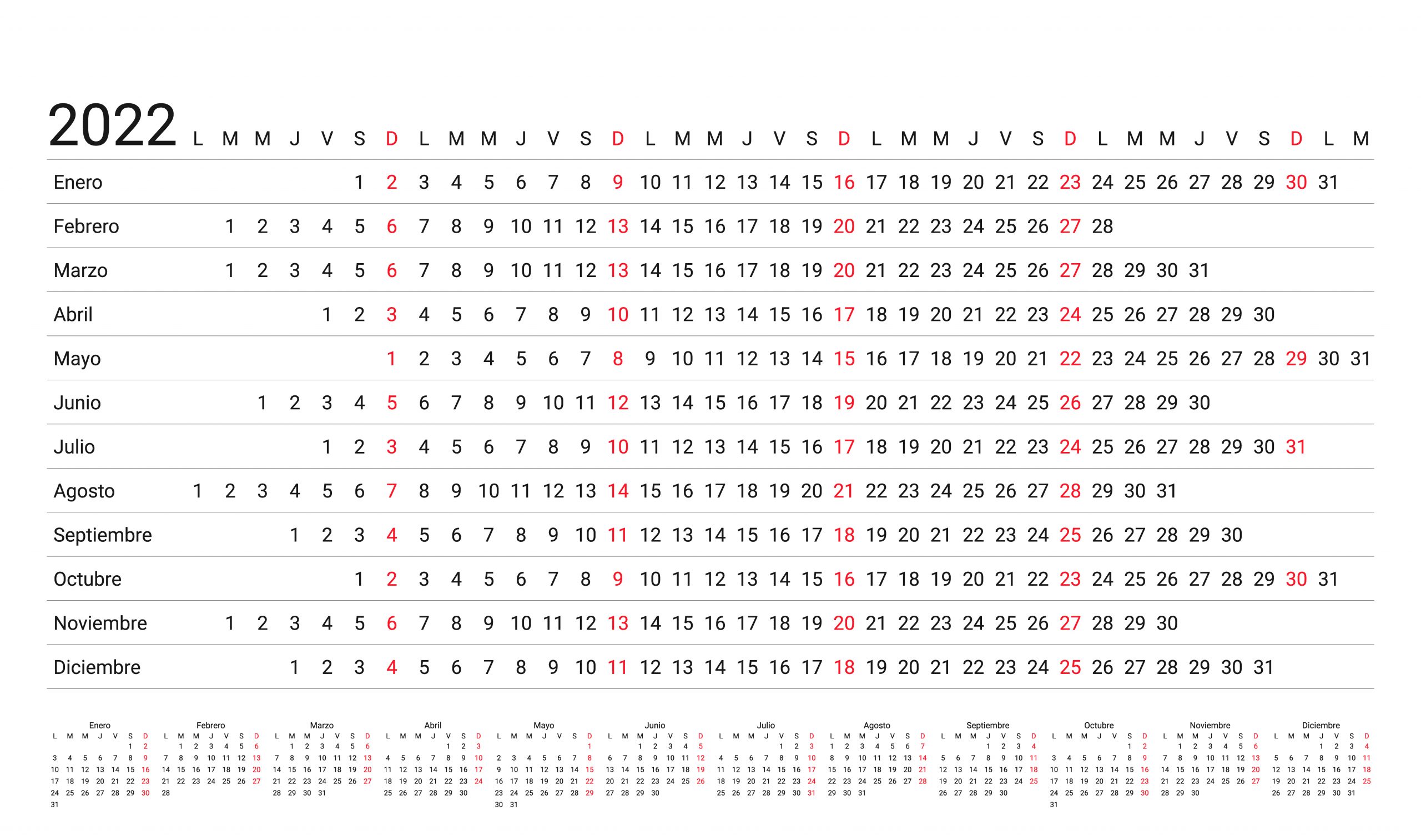 2022 Spanish linear calendar template. Planner grid. Vector illustration. Publicado por orientacionandujar el 20 diciembre, 2021 2022 linear Spanish calendar. Horizontal planner for year. Yearly calender template.