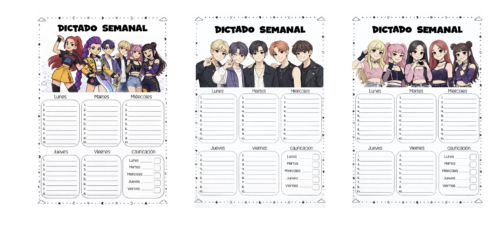 - Plantilla para dictados semanales de las guerreras de kpop