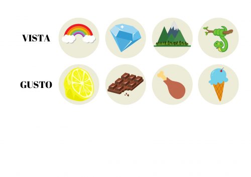 Una actividad previa a este recurso puede ser buscar objetos en el aula que nos permitan asociarlos a distintos sentidos. Por ejemplo: el café caliente de la maestra se puede asociar principalmente al gusto por su sabor o al olfato por su aroma e ir justificando las distintas respuestas.