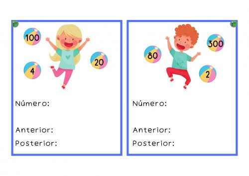 Los alumnos deben formar el número de tres dígitos y escribir el anterior y el posterior.