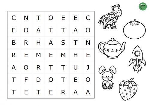 Los alumnos deben buscar los nombres de las imágenes en la sopa de letras y colorearlos a medida que los van encontrando.