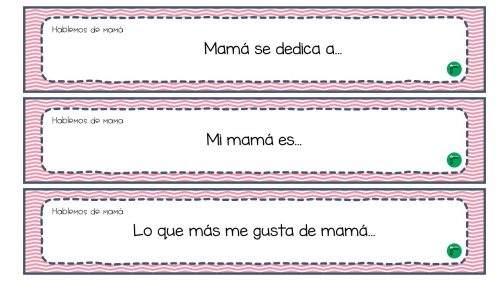 Hoy os propongo una dinámica que nos permitirá ejercitar la expresión oral en el aula a través de una actividad en grupo. Se trata de una colección de tarjetas con unos enunciados, que nuestros alumnos deberán seguir con su experiencia personal; en esta ocasión, aprovechando que en los próximos días se celebra el día de la madre, la temática de la tarea va a ser ésta.