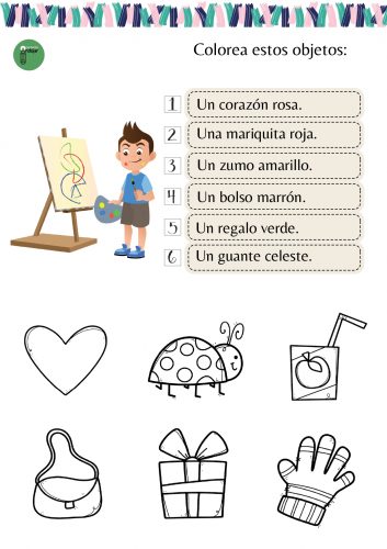 Los niños deben leer las frases y colorearlas según se indica seleccionando el elemento correcto.