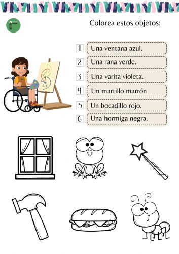 Hoy os traemos estas bonitas fichas para trabajar la comprensión de frases simples y vocabulario de objetos y colores.
