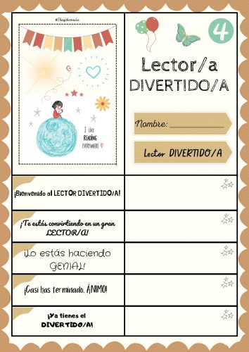 Cada niño tiene un carnet lector, que va subiendo de nivel en función de los libros que lee. Por cada libro leído, se pega una estrellita en su carnet. Cuando consigue completar un carnet pasa al siguiente. Después de cada lectura, el alumno rellena una ficha de su libro de registro de lecturas, dónde expresa su opinión y dibuja lo que más le ha gustado.