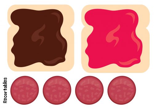 Cuenta con una tostada, distintos alimentos y seis tarjetas que indica qué se le colocarán a la tostada. También cuenta con un listado en blanco para que los niños puedan hacer sus propias elecciones.
