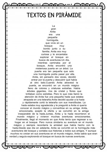 Bonitos textos en piramide para trabajar la velocidad lectora