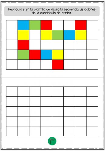 Si nos seguís, ya sabréis que además de compartir materiales para trabajar con niños en el aula; también diseñamos materiales y recursos destinados a prevenir el deterioro cognitivo en personas adultas. Y ese es el objetivo del siguiente ejercicio: una serie de fichas para repetir secuencias de colores.