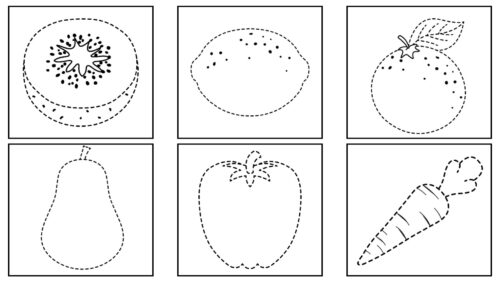 - Mis tarjetas para trabajar los trazos frutas y verduras y colorea