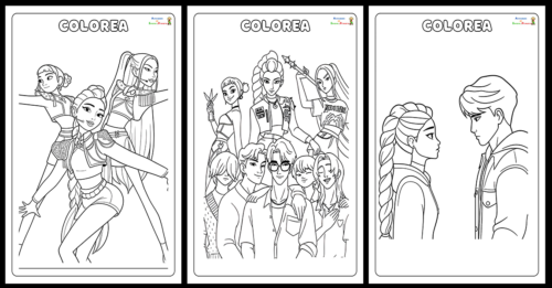 - Cuaderno de 30 dibujos para colorear de las Guerreras K-Pop y los Saja boys