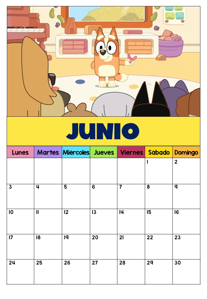 CALENDARIO BONITO ANOTACIONES FAMILIA BLUEY PARA TU CLASE 2024