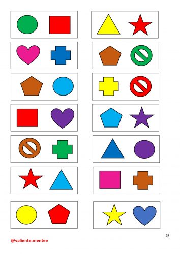 Páginas de 28 a 31: En este ejercicio tendrán que buscar las parejas de tarjetas idénticas con las mismas figuras geométricas y los mismos colores. Para ello tendréis también que imprimir dos veces esta parte del documento.