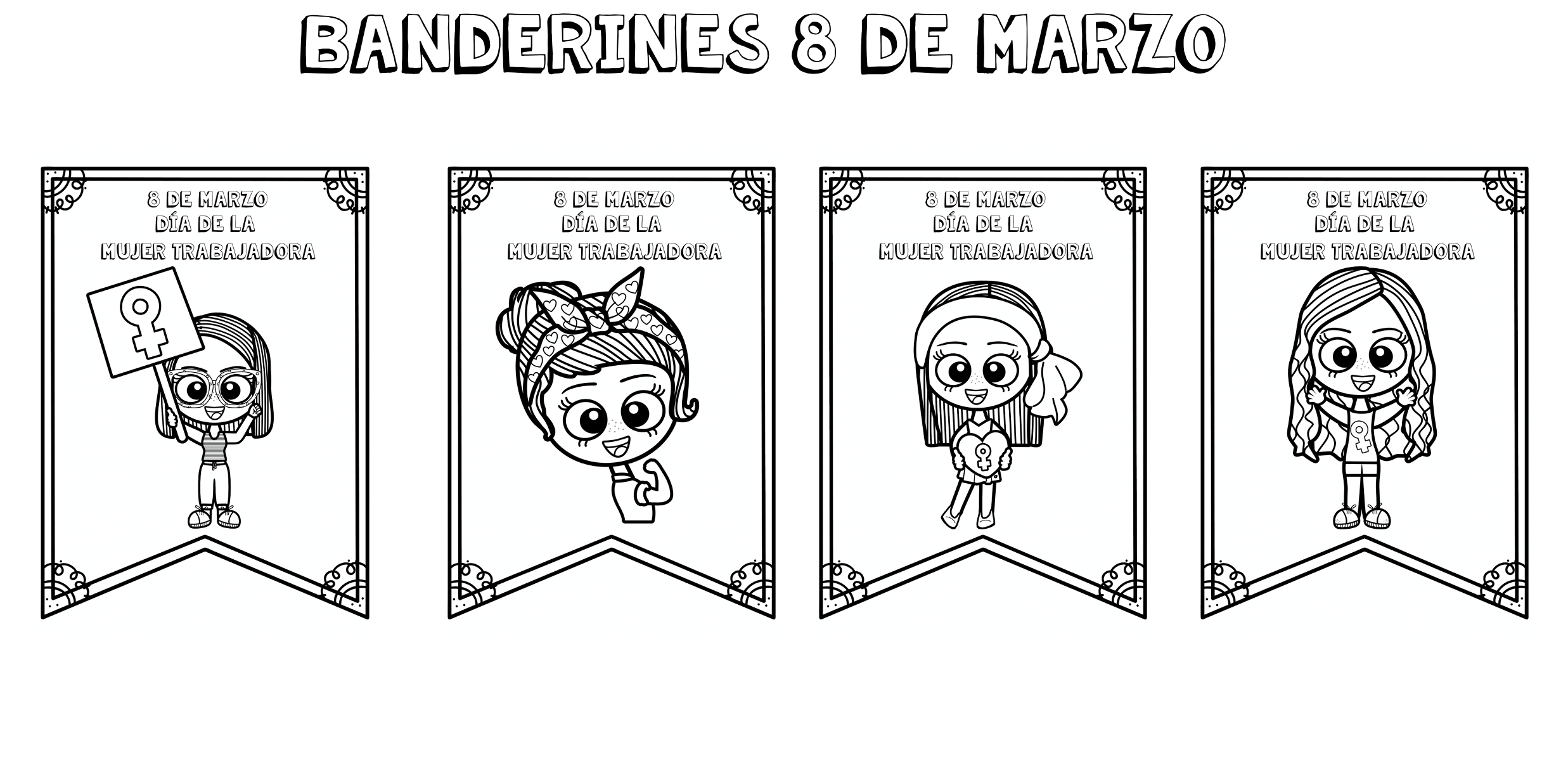 VAMOS A COLOREAR Banderines para el 8 de marzo DÍA DE LA MUJER Publicado por orientacionandujar el 6 marzo, 2024
