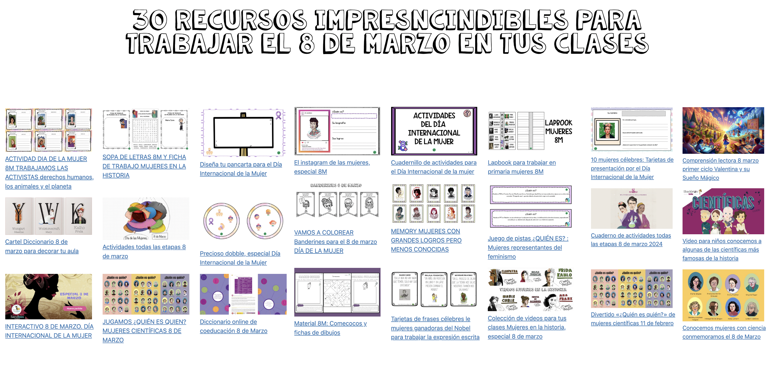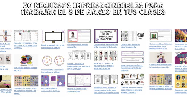 30 RECURSOS IMPRESNCINDIBLES PARA TRABAJAR EL 8 DE MARZO EN TUS CLASES Publicado por orientacionandujar el 7 marzo, 2024