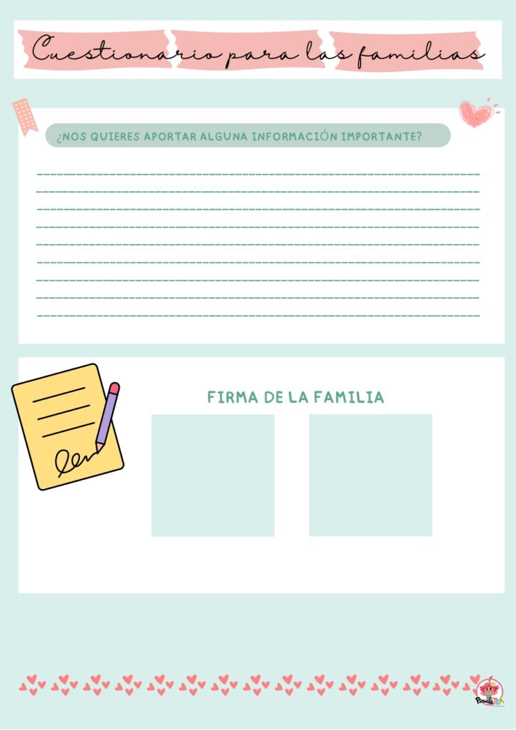 Al comenzar el nuevo curso escolar, es fundamental establecer una comunicación efectiva con las familias, especialmente en el contexto de Necesidades Específicas de Apoyo Educativo (NEAE). Queremos compartir este cuestionario de ©PiruleTEA – Anabel Rueda «Cuestionario Inicial para Familias – Especial NEAE» está diseñado para recopilar información valiosa que ayudará a los educadores a adaptar sus métodos y recursos para mejor atender a cada estudiante.