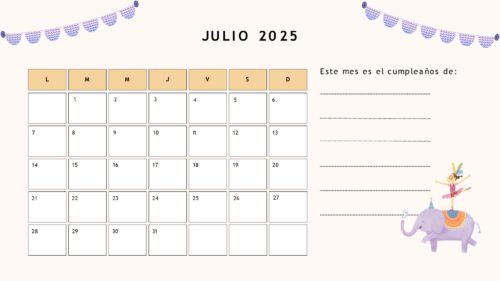 Este calendario está diseñado con secciones mensuales donde puedes anotar los cumpleaños de cada estudiante, asegurando que ningún evento especial pase desapercibido. Cada mes está ilustrado con temas atractivos y apropiados para la edad, haciendo de este calendario un elemento decorativo y funcional para el aula.