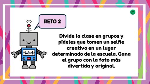 Estos retos están diseñados para romper el hielo de manera creativa y entretenida, permitiendo que los alumnos se sientan cómodos y motivados desde el primer día. Cada reto está pensado para fomentar la colaboración, la comunicación y la creatividad, ayudando a que los estudiantes se familiaricen entre ellos y con su nuevo entorno escolar.