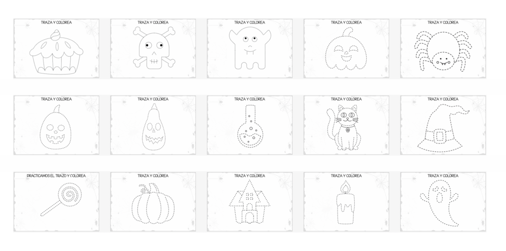 Con estas actividades, los niños practicarán el trazo siguiendo líneas y formas, a la vez que pueden dar rienda suelta a su creatividad al colorear los divertidos dibujos. Estas tareas no solo son perfectas para trabajar la coordinación mano-ojo, sino que también permiten que los niños se relajen y disfruten de la temporada de Halloween mientras desarrollan sus habilidades motoras.