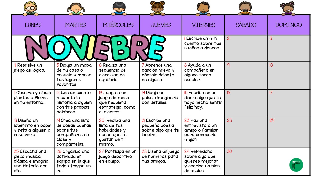 Calendario inteligencias multiples noviembre primaria Publicado por María Olivares el 29 octubre, 2024